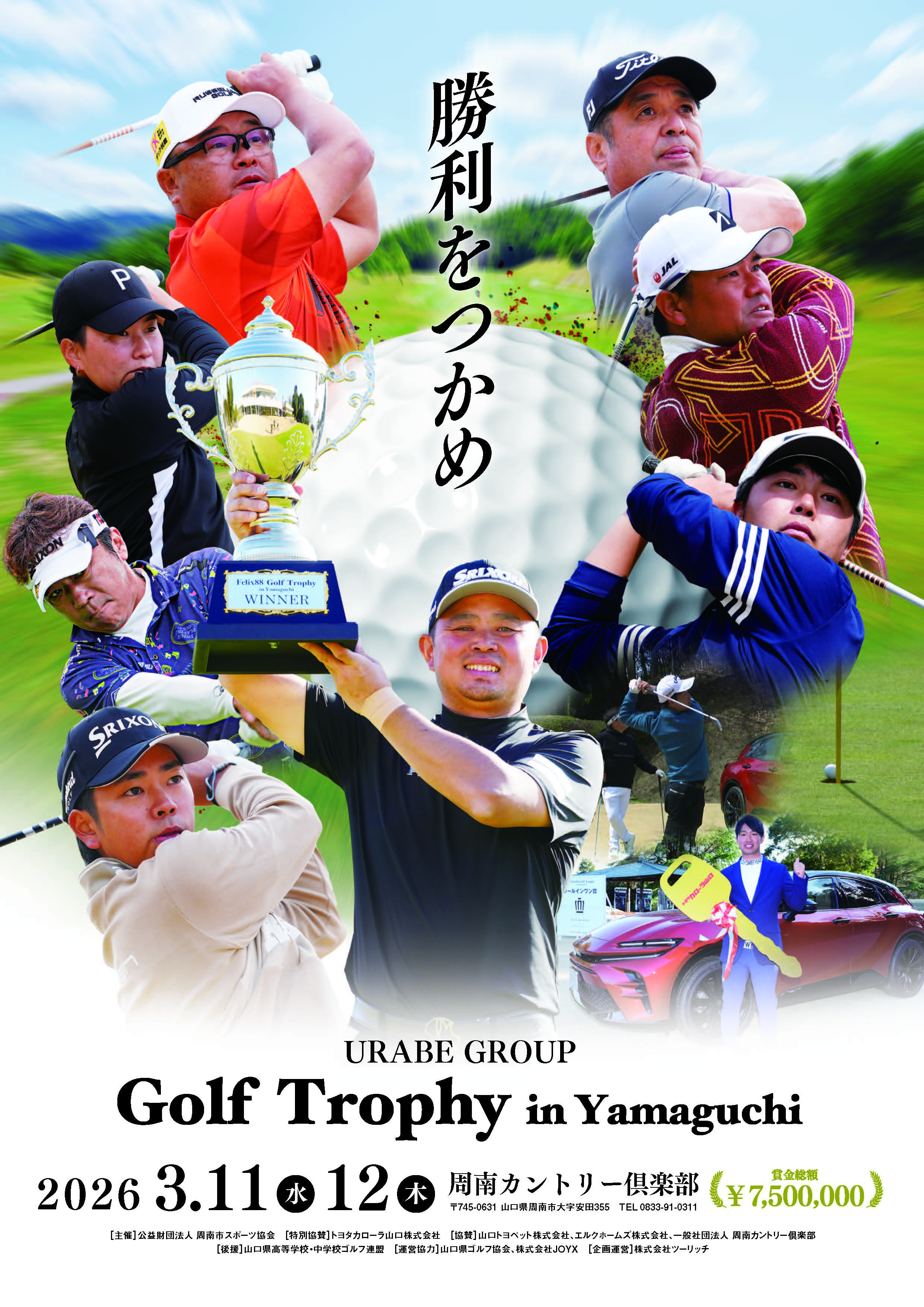 3月11日(水)・12日(木)に周南カントリー倶楽部にて開催される『URABE GROUP Golf Trophy in Yamaguchi本戦』の組み合わせおよびスタート時刻表等をお知らせいたします。